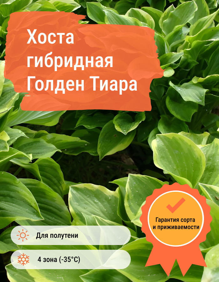 Рассада хосты гибридной Голден Тиара (Golden Tiara), которая представляет собой очень нарядный сорт, приживается во многих регионах. Листья крупные, сердцевидной формы насыщенного зеленого цвета с широкой кремово-желтой каемкой по краям. Цветет лавандовыми колокольчиками, которые образуют соцветия на концах высоких тонких стеблей.