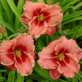 Рассада лилейника "Сайлом Роббон Кэнди" (Siloam Ribbon Candy) предпочитает расти на открытых хорошо освещенных участках либо в условиях частичной затененности. В тени многолетник теряет свою яркость. Период цветения - июль-август. Цветок розовый с красным глазом и гофрированными краями внутренних лепестков. Имеет очень нежный вид. В диаметре цветы достигают до 10 см. Высота цветоносов около 50-60 см. Сорт рассады лилейника "Сайлом Роббон Кэнди" прекрасно будет смотреться не только в одиночных, но и групповых посадках.