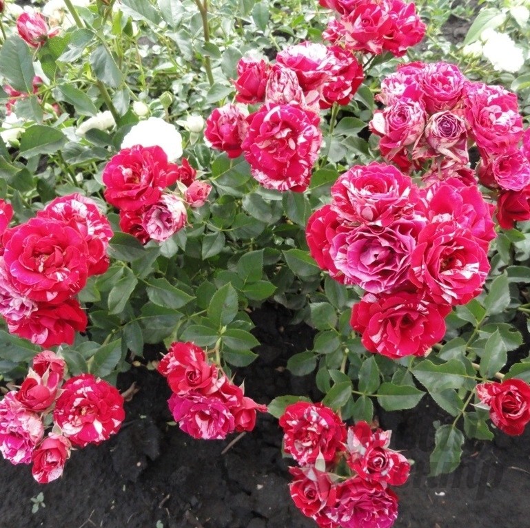 Саженцы розы спрей Arrow Folies отлично растут на солнечных участках с плодородной, увлажненной, нейтральной почвой, где нет застоя влаги. Сорт неприхотлив, отличается высокой зимостойкостью, устойчив к заболеваниям. Куст компактный, высотой всего до 60 см и шириной до 50 см. Побеги многочисленные, густооблиственные, с крупными шипами. Цветение непрерывное, продолжается с июня до сентября. Цветки махровые, диаметром 4-6 см, пурпурно-красного окраса с белыми полосами, с нежным ароматом. Срезанные бутоны могут длительное время стоять в воде и не терять привлекательности.