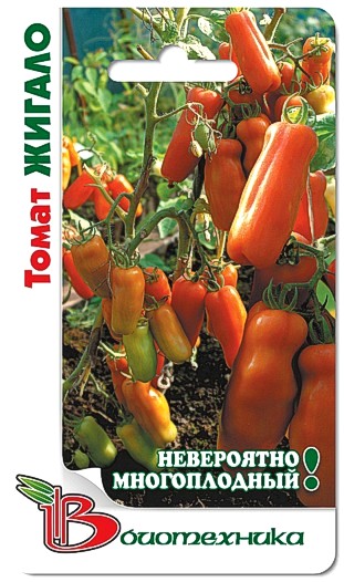 Семена томата "Жигало" (Zhigalo) прорастают достаточно быстро и превращаются в компактные кустики высотой 40-45 см. Выращивать можно в условиях открытого грунта в плодородной почве. Кисть растения состоит обычно из 5-6 плодов. Период созревания наступает через 100-105 дней после появления первых всходов. Помидорки имеют сильно вытянутую цилиндрическую форму, их длина достигает 15-16 см, а диаметр – 3-4 см. Кожица красного цвета, плотная. Средняя масса достигает 130-140 грамм. Урожай идеально подходит для цельноплодного консервирования и потребления в свежем виде.